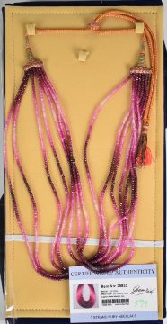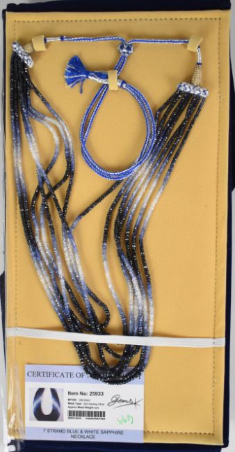 Three gem set necklaces including a seven strand ruby necklace, the total ruby weight approximately 258ct, a seven strand sapphire necklace, the total sapphire weight approximately 288ct and a three stand moonstone necklace