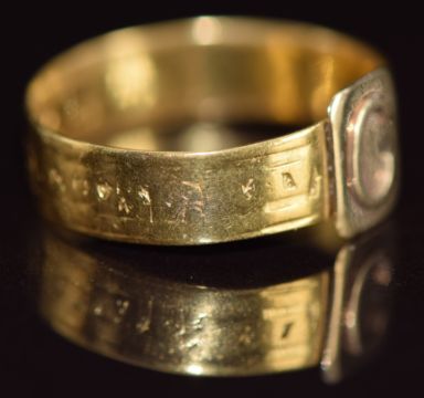 Georgian 18ct gold ring mounted with a later 9ct gold 'C', London 1803, 2.6g, size P