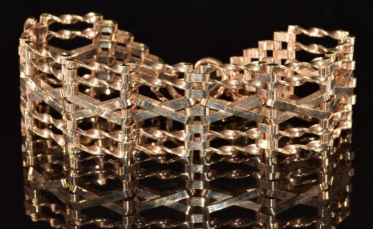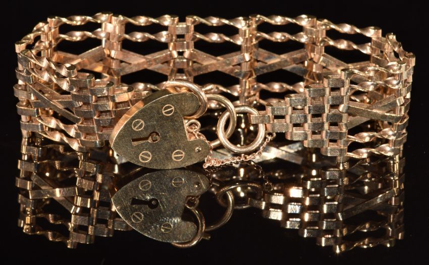 A 9ct gold gate bracelet with 9ct gold heart padlock clasp, 24.0g, 16cm