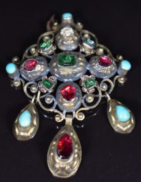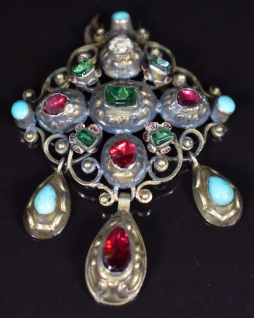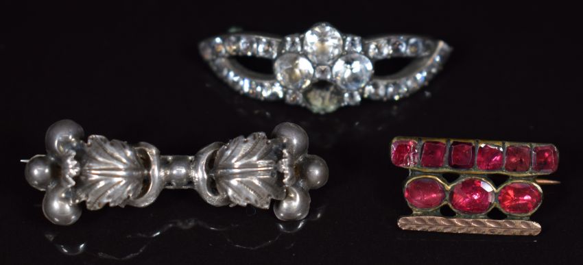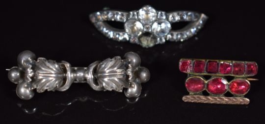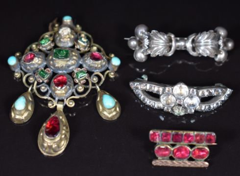 Georgian brooch set with foiled garnets, Victorian silver brooch, foiled paste brooch and an Austro Hungarian pendant