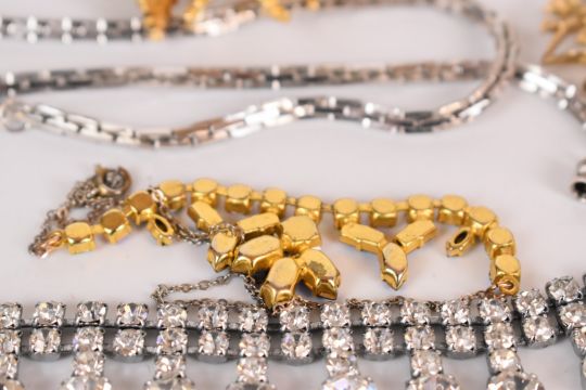 A collection of costume jewellery including Sphinx brooch, Jewelcraft bracelet, Sarah Coventry, diamanté, Empire bracelet, Napier necklaces etc