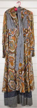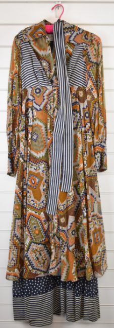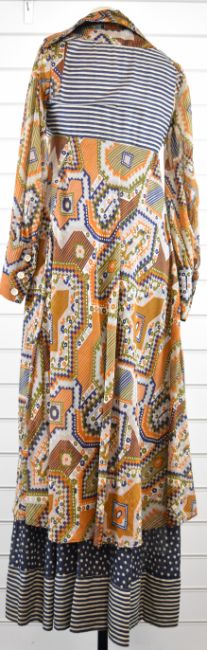 Vintage Jean Varon 1970s boho-chic maxi dress, size 10, with photograph of the dress being worn