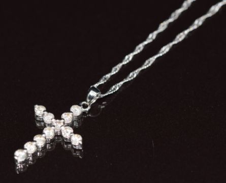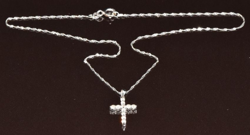 An 18ct white gold cross pendant set with diamonds, on 18ct white gold chain, 2g