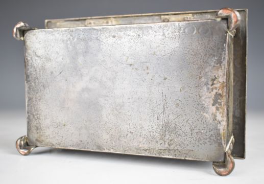 Liberty or similar Arts & Crafts hammered cigar box with fleur de lys enamelled decoration, W19 x D12 x H5.5cm