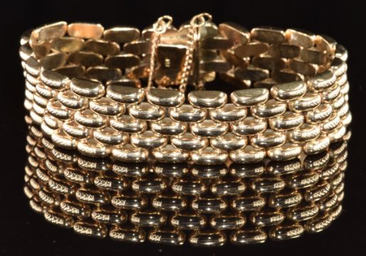 A 9ct gold wide link bracelet, 38.6g, 19.5cm
