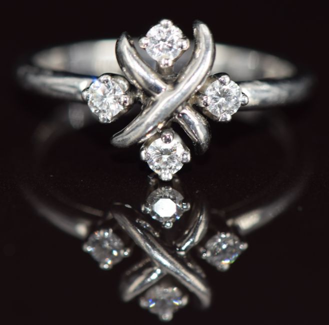 Tiffany & Co platinum ring set with four diamonds in a cross design, 5.1g, size O