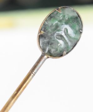 Cased set of six Chinese or Kong Kong silver and hardstone, jade or similar teaspoons, marked HK sterling, length 10.5cm, weight 37g all in, in original fitted case