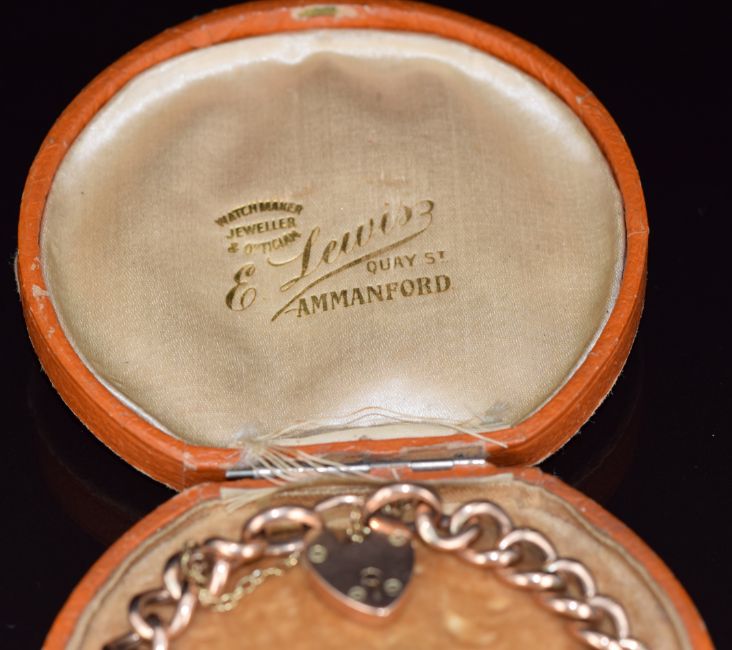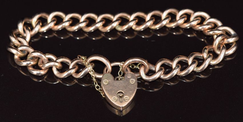 A 9ct rose gold bracelet with heart clasp, the clasp hallmarked Birmingham 1909, 11.6g, 17cm