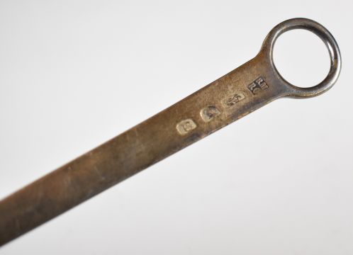 Georgain hallmarked silver meat skewer with loop handle, London 1776, maker Robert Makepeace & Richard Carter, length 33.5cm, weight 122g
