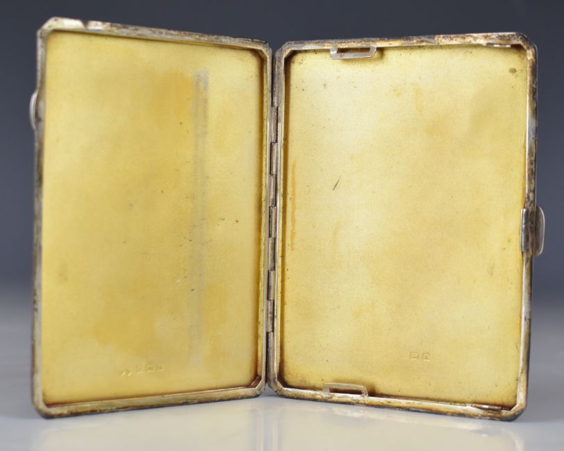 Art Deco hallmarked silver cigarette case, with engine turned decoration, Birmingham 1934, maker Frederick Field Ltd, length 10.5cm, weight 151g