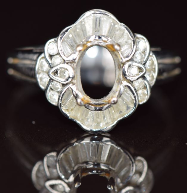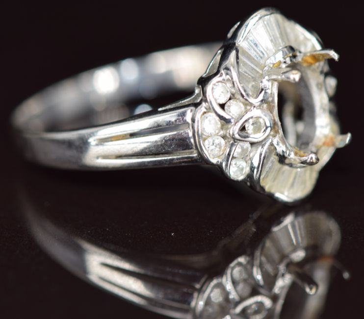 An 18k white gold ring set with round and baguette cut diamonds (missing centre stone), 4.2g, size W