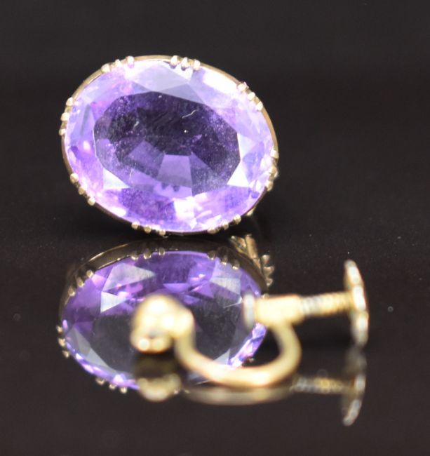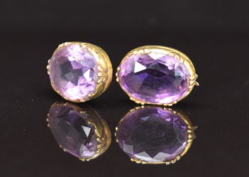 Two Victorian brooches set with amethysts, the largest approximately 22.9 x 18.1 x 10mm, Victorian hat pin set with two amethysts and two loose further amethysts