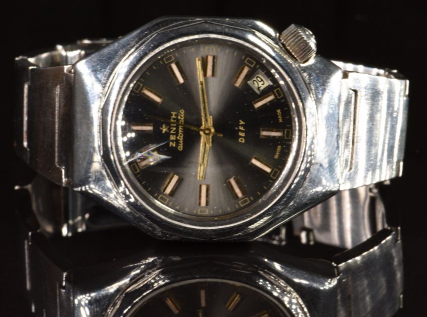 Zenith DEFY Sub Sea gentleman's automatic wristwatch with date aperture, two-tone hands and baton hour markers, grey dial, stainless steel octagonal case and signed 17 jewel calibre 2572 movement, on stainless steel bracelet, case diameter 37mm.