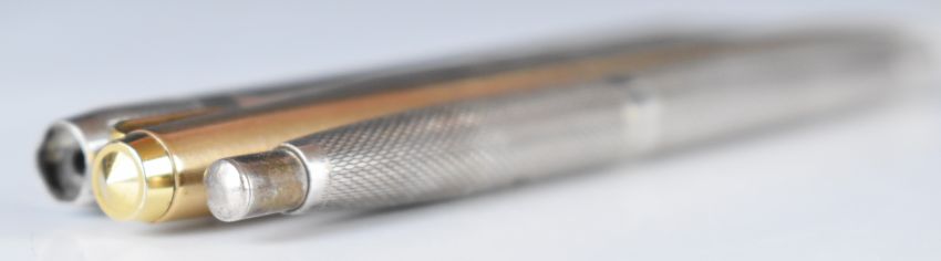 Five various hallmarked silver and gold plated propelling pencils and a ballpoint pen, including Parker, Eversharp, Longerlead, Yard-o-Led