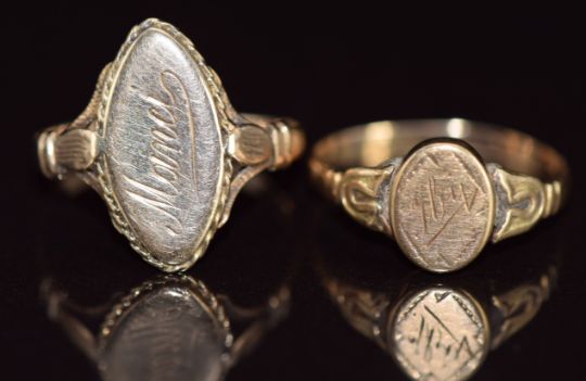 Two 9ct gold signet rings, 2g, size H & I