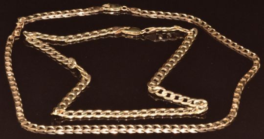 Two 9ct gold curb link necklaces, 22g, 44 x 39cm