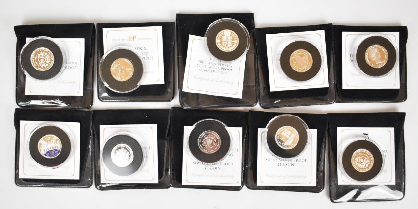 Ten Jubilee Mint silver proof £1 coins, in pouches with certificates