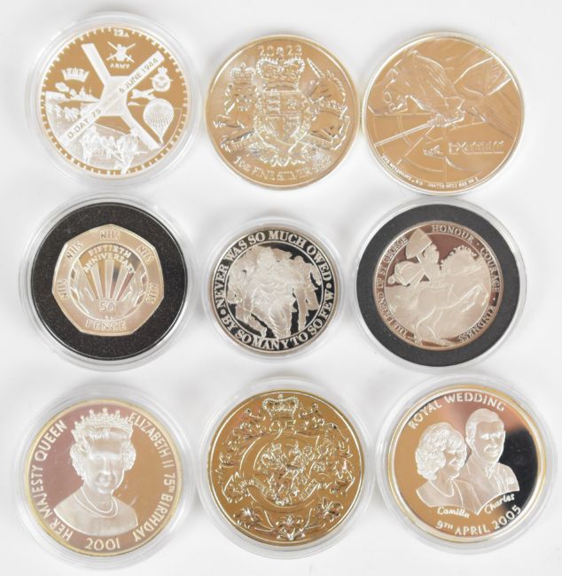 Ten various silver coins including Charles III 2023 1oz £2, 2022 Darth Vader $2, NHS 50p, piedfort etc