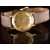 Omega Seamaster De Ville 9ct gold gentleman's wristwatch ref. 165.65030 with black hands, two-tone baton hour markers, gold dial and signed movement, on brown leather strap, case diameter 34mm.