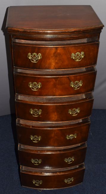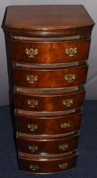 Mahogany bow fronted chest of six graduated drawers, W49 x D34 x H124cm