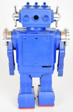 Japanese battery operated plastic body 'Smoking Engine' robot by Horikawa, height 25cm, in original box.