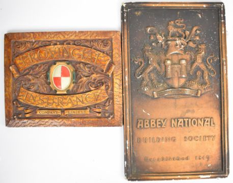 Vintage Provincial Insurance and Abbey National wall plaques, size of larger 59.5 x 35.5cm