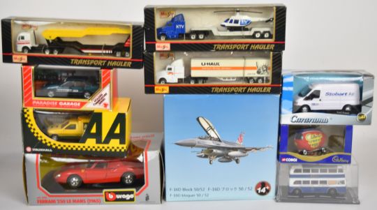 Forty diecast model cars, buses and aeroplanes to include Solido, Polistil, Burago, Original Omnibus, Corgi, Lledo etc.