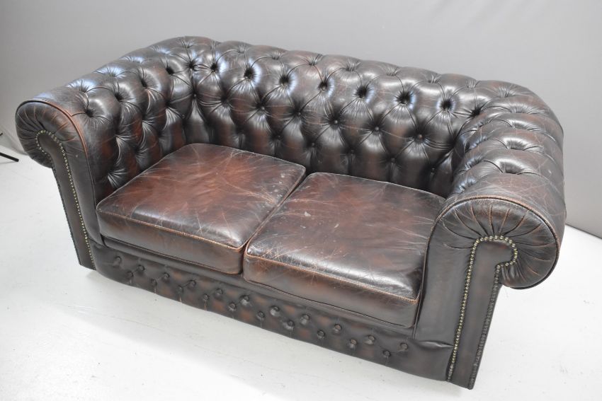 Brown leather Chesterfield two seater sofa, width 160 x height 70cm