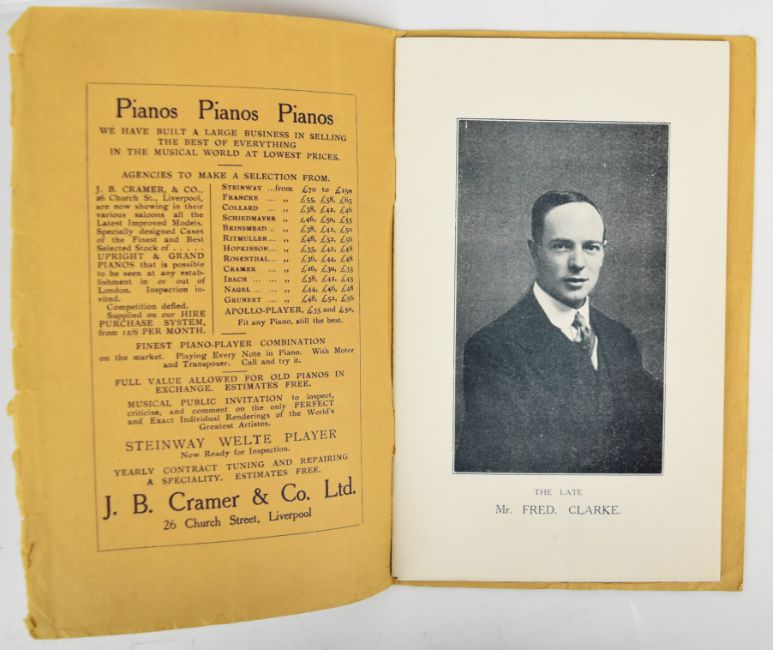 Titanic interest, memoriam for Mr Fred Clarke, member of the Titanic's band / eight piece orchestra, with associated book, printed material and DVD.