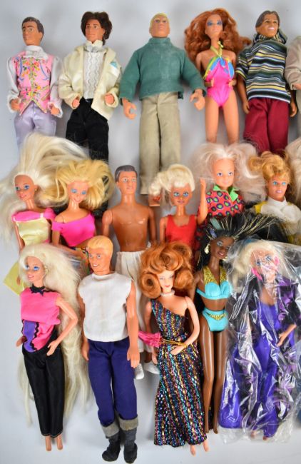 Twenty-five Mattel Barbie dolls dressed in a range of evening, sports and casual clothing.