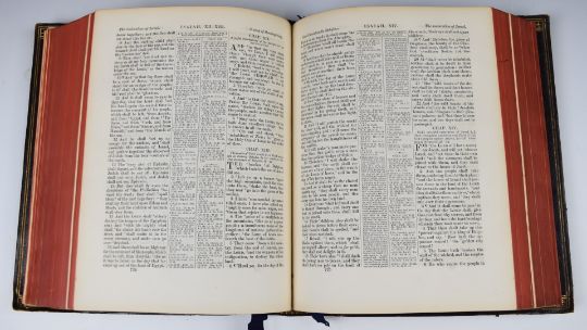The Comprehensive Bible; containing the Old and New Testaments...Parallel Passages...Philological & Explanatory Notes etc published Samuel Bagster & Sons (c.1870) with several maps, charts etc, and bound in full heavy morocco with bevelled boards, raised bands and gilt spine lettering