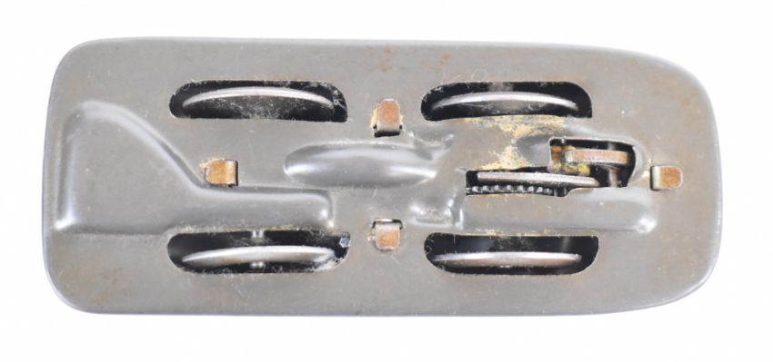 Technofix clockwork tinplate Quick Service Filling Station with two cars and key, 299, made in West Germany.