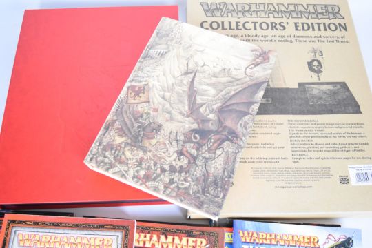 Games Workshop and Citadel Miniatures Warhammer Collector's Edition rule book, with certificate number 1981 of 4000, in protective cardboard sleeve, together with eight related supplements.