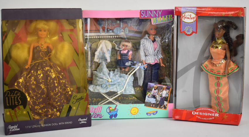 Six Barbie style fashion dolls to include Steffi Love, Sandi and Hamleys International Designer Collection, all in original boxes.