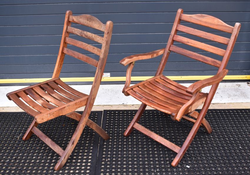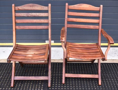 Teak garden table and six (2+4) folding chairs by Alexander Rose, table L165 x W100 x H72cm
