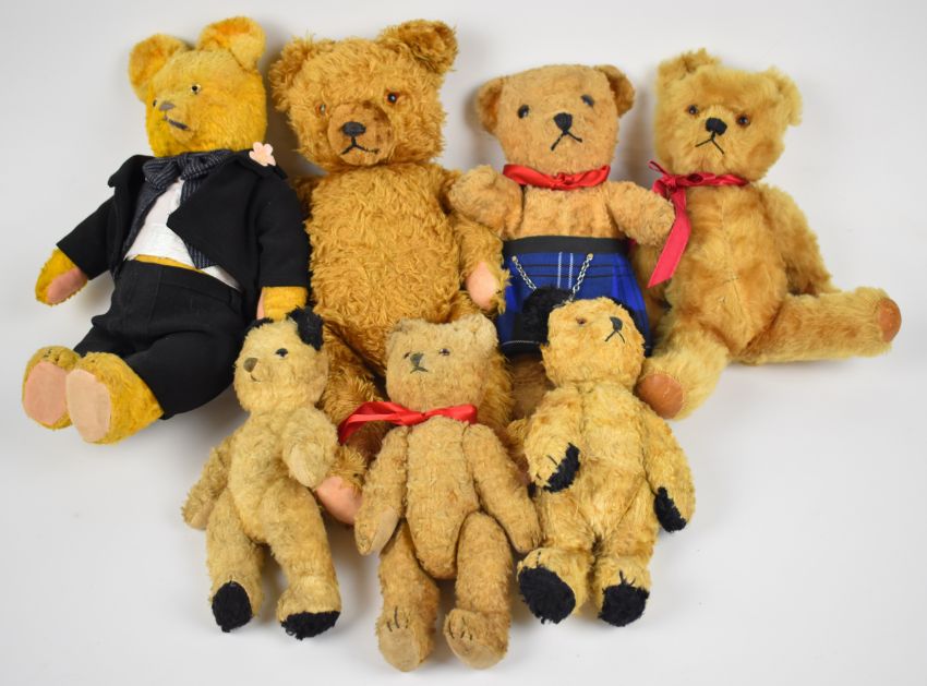 Fifteen vintage Chiltern, Chad Valley and similar Teddy bears, tallest 50cm.