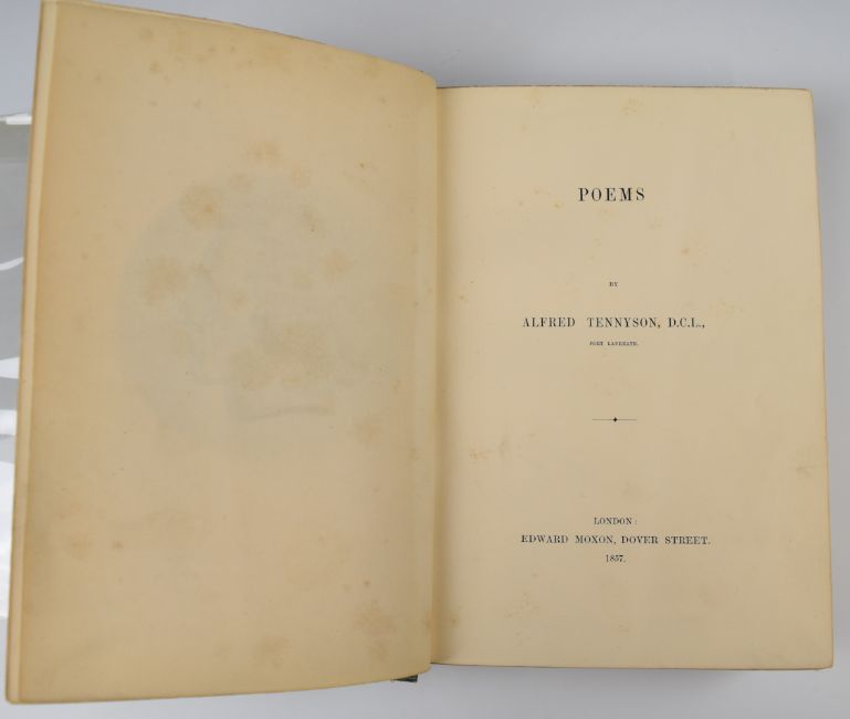 [Pre-Raphaelite] Poems by Alfred Tennyson published Edward Moxon 1857 the first edition with engravings by members of the Pre-Raphaelite brotherhood, including J.E. Millais, D.G. Rossetti, Holman-Hunt & others and portrait medallion by Thomas Woolner, bound in publisher's gilt cloth