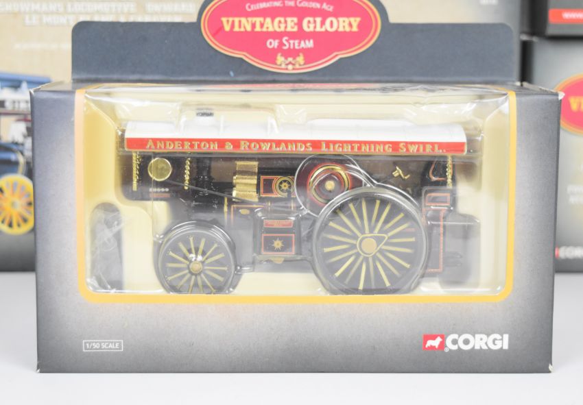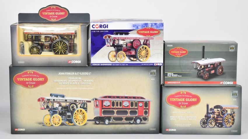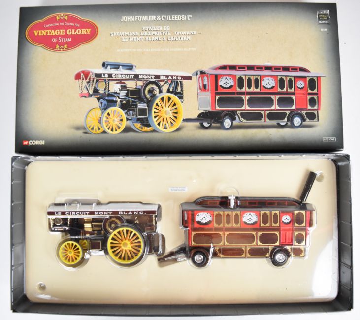Five Corgi Vintage Glory of Steam 1:50 scale diecast model Showman's engines to include Fowler B6 Le Mont Blanc & Caravan 80110, all in original boxes.