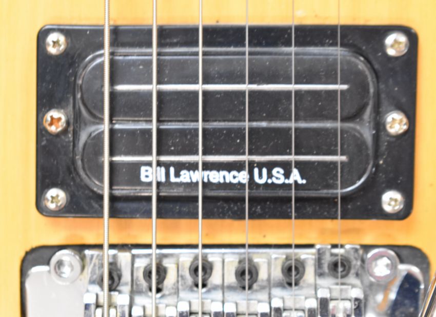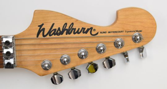 Washburn N2 Nuno Bettencourt Signature Model electric guitar with Floyd Rose tremolo, Bill Lawrence humbucker pickups, 22 frets and natural finish, serial no. 06044818, made in China.