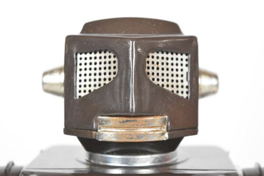 Japanese battery operated tinplate 'Attacking Martian' robot by Horikawa (SH Toys), height 28cm, in original box with cardboard insert.