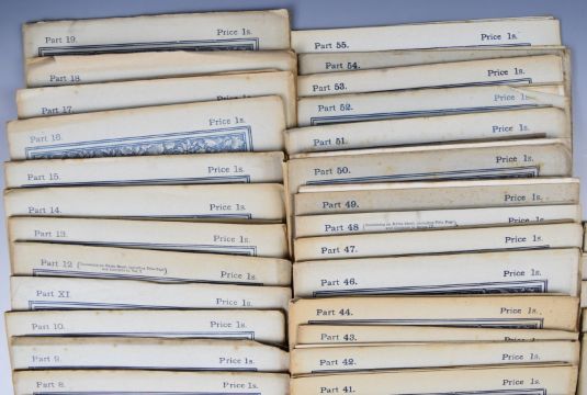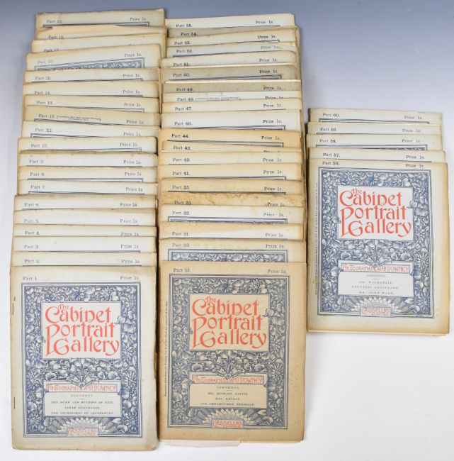[Photographic Portraits] The Cabinet Portrait Gallery with Photographs by W.D. Downey issued by Cassell & Co. Limited (c.1890s) comprising 45 original parts (of 60), each part with 3 photographic plates of famous Authors, Actors, Royals, Artists etc including Sarah Bernhardt, James Payn, Prince of Wales, Mrs. Langtry, Lynn Linton, Sir Frederick Leighton, Princess of Wales, Emily Faithfull, Bernard Shaw, Edwin Arnold, W.T. Stead, Lady Churchill, Thomas Hardy, Luke Fildes, King of Saxony etc. Each part in original printed wrappers and with advertising sheets bound in (45)
