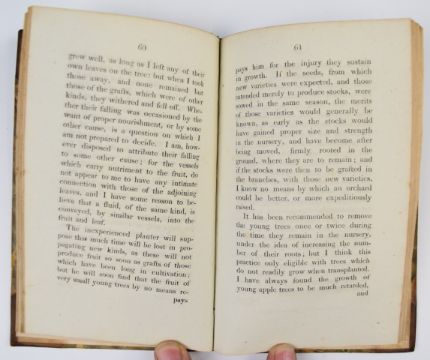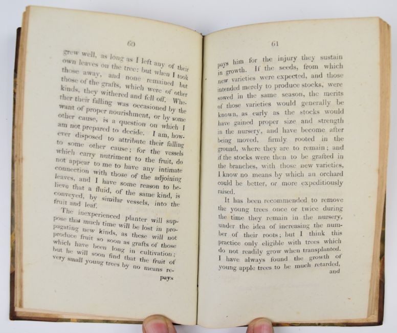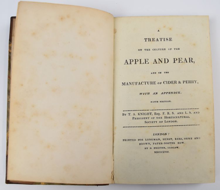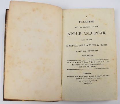 A Treatise on The Culture of The Apple And Pear and on the Manufacture of Cider & Perry with an appendix, by T.A. Knight Esq., printed for Longman, Hurst, Rees, Orme and Brown 1818 fifth edition, in half leather binding with some loss of spine covering [green & black pictorial bookplate with name of Joseph Humphreys of Claremont 1834]