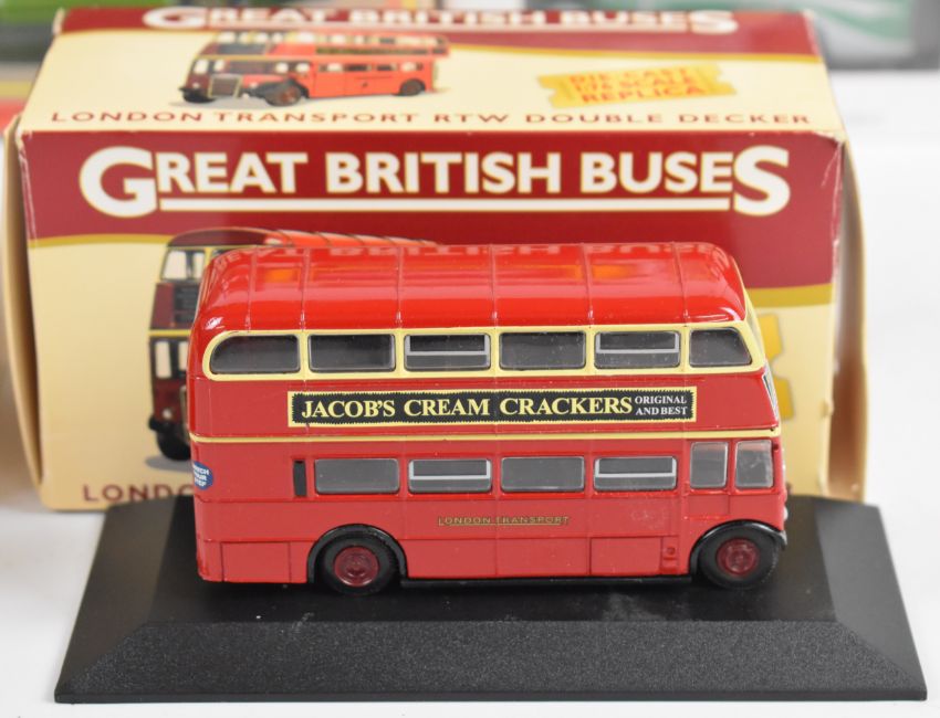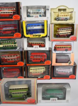 Twenty-four diecast model buses, manufacturers include Gilbow Exclusive First Editions (EFE), Corgi, Atlas Editions and Lledo, all in original boxes.