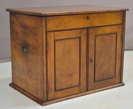 19thC mahogany twin handled campaign stationery chest with hinged lid, and fitted cupboard beneath, W47 x D32 x H39cm