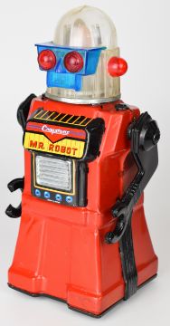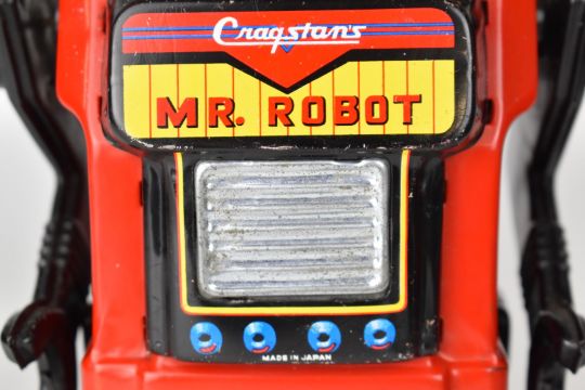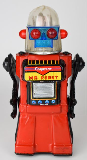 Japanese battery operated tinplate 'Cragstans Mr. Robot' by Yonezawa (Japan), height 28cm.