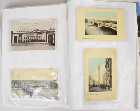 Album of topographical postcards including London, Middlesex, Kent, Surrey, Thames Embankment, Covent Garden, Crystal Palace, Brentford, Sevenoaks, Maidstone, Margate, Dover, Guildford, Lowestoft regatta, Kings Lynn, Luton, Huntingdon etc, approximately 300 cards and ephemera