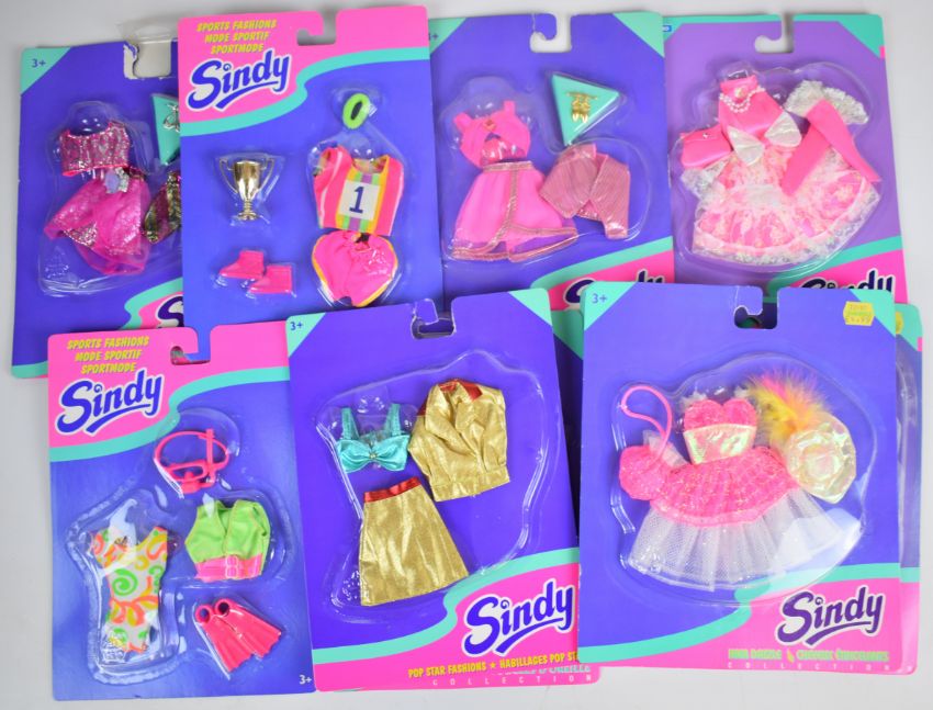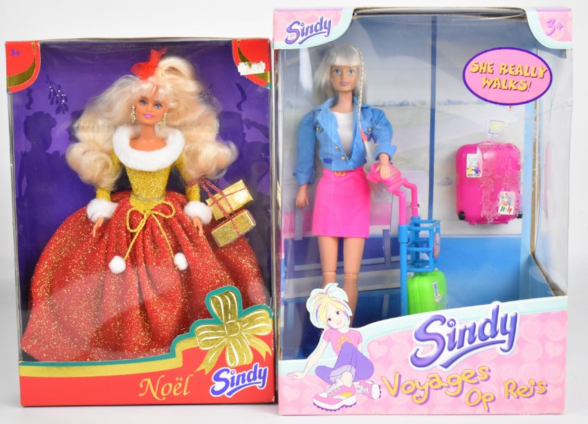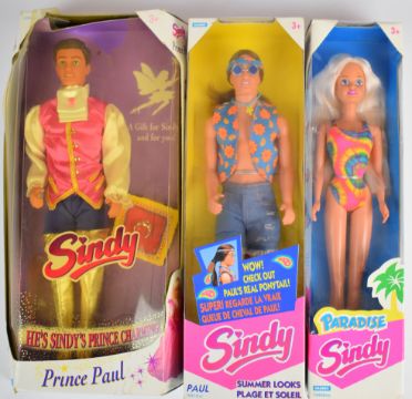 Five Hasbro Sindy dolls dating to the mid 90's comprising Noel 18628, Paradise Sindy 16409, Summer Looks Paul 18413, Prince Paul 18390 and Voyages Op Reis together with fourteen clothing and accessory pack, all in original boxes.