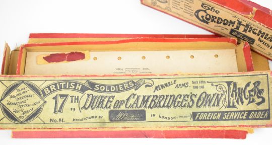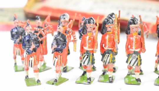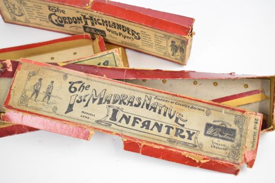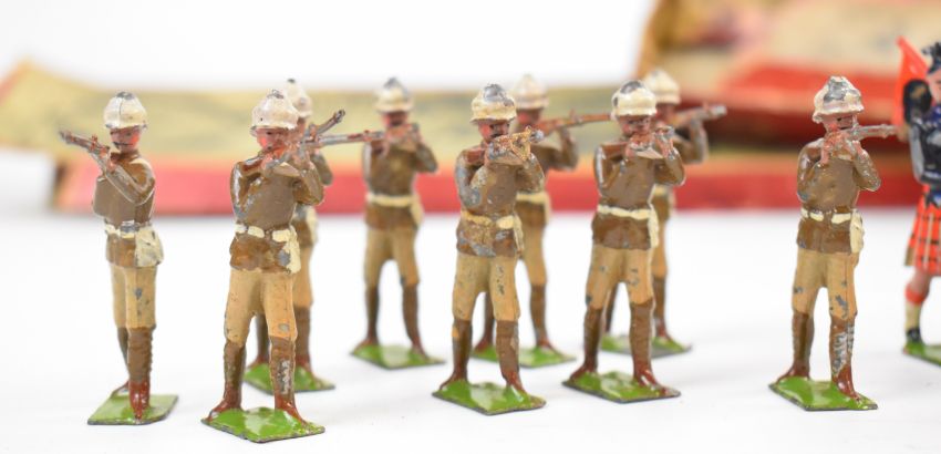A collection of vintage Britains metal soldiers, with three original boxes.