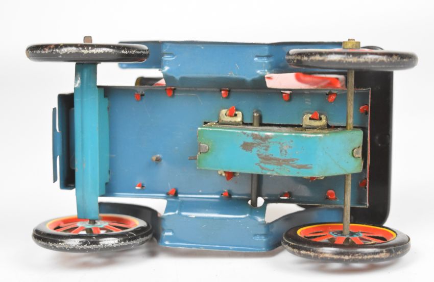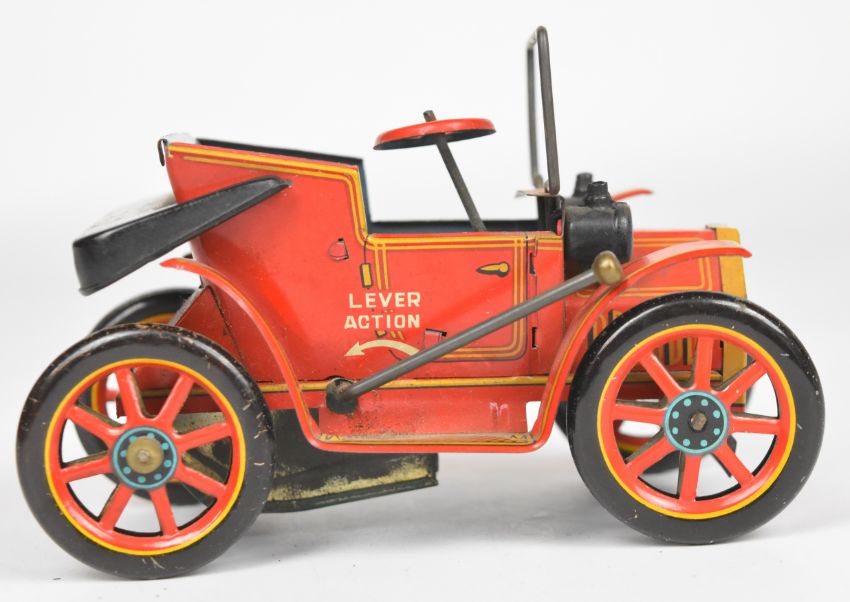 Tinplate lever driven car by Modern Toys / Masudaya, made in Japan.