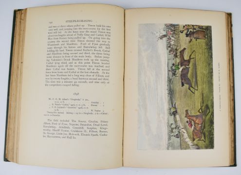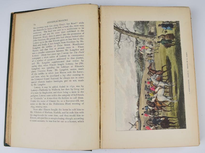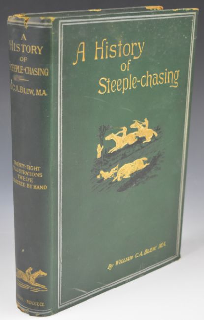 A History of Steeple-Chasing by William C.A. Blew with 28 illustrations chiefly drawn by Henry Alken, including 12 hand-coloured plates, published John C. Nimmo 1901, bound in publisher's gilt decorated cloth
